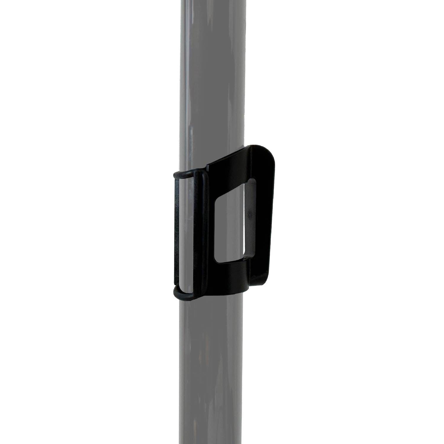 The holder includes elastic bands in three sizes to accommodate walking sticks of varying thicknesses. The walking stick holder slides into the frame rail and can be easily removed when not needed, offering flexible everyday convenience.